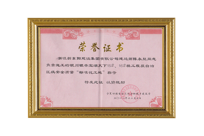 银川银帝宝湖天下15号、16号楼工程—宁夏自治区级安全质量“标准化工地”