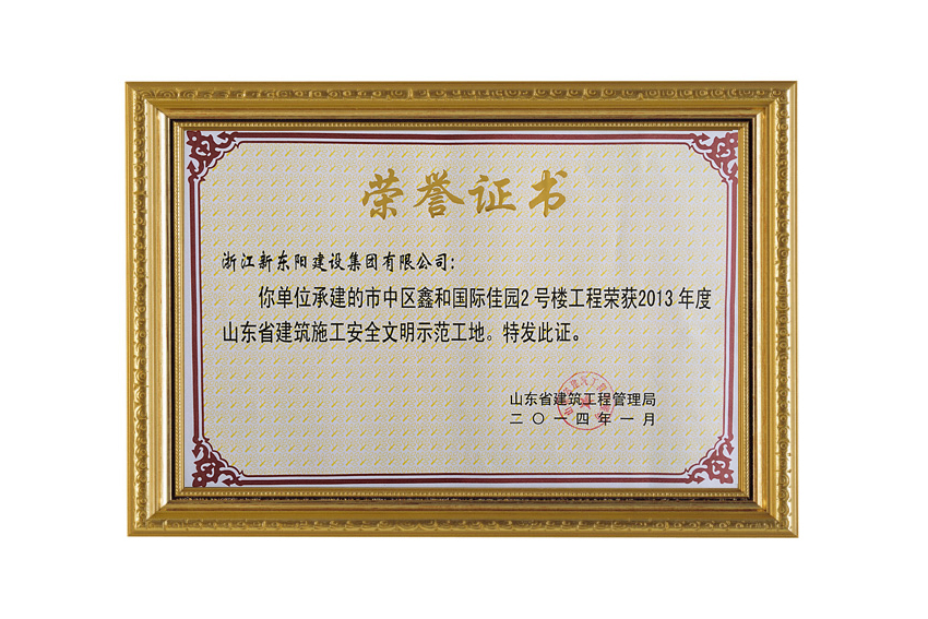 鑫和国际佳园2号楼工程—山东省建筑施工安全文明示范工地