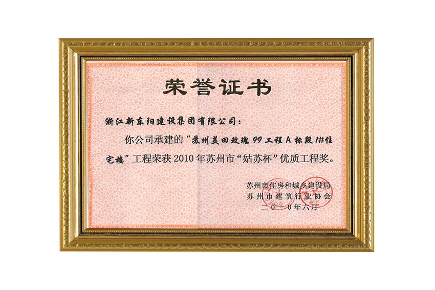 苏州美田玫瑰99工程A标段—苏州市“姑苏杯”优质工程