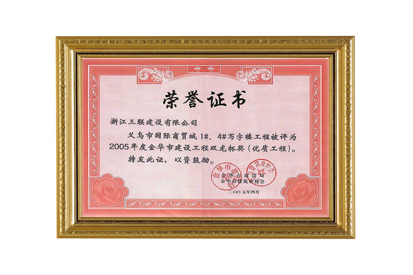 义乌市国际商贸城—金华市建设工程双龙杯奖