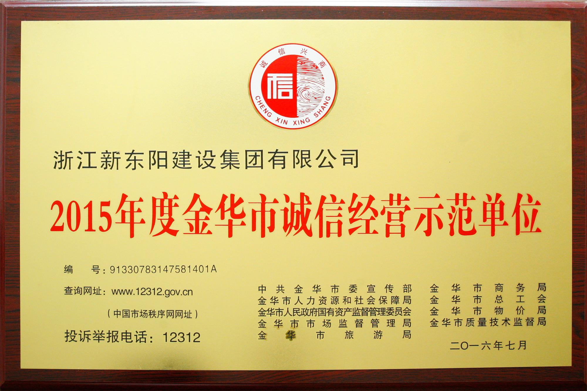 2015年度金华市诚信经营示范单位